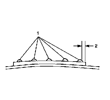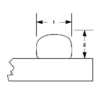 1. Apply beads of adhesive to a height (2) of 6-9 mm (1/4-3/8 in) and a width (1) of 15 mm (5/8 in).
