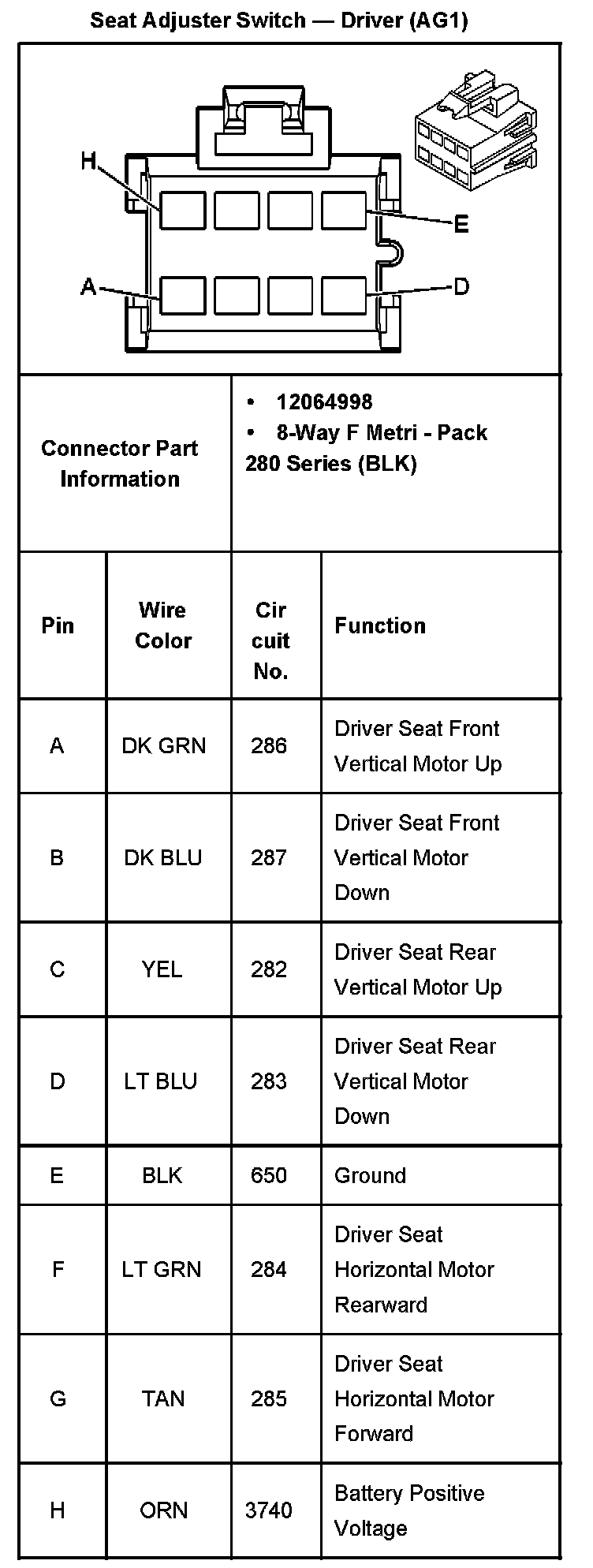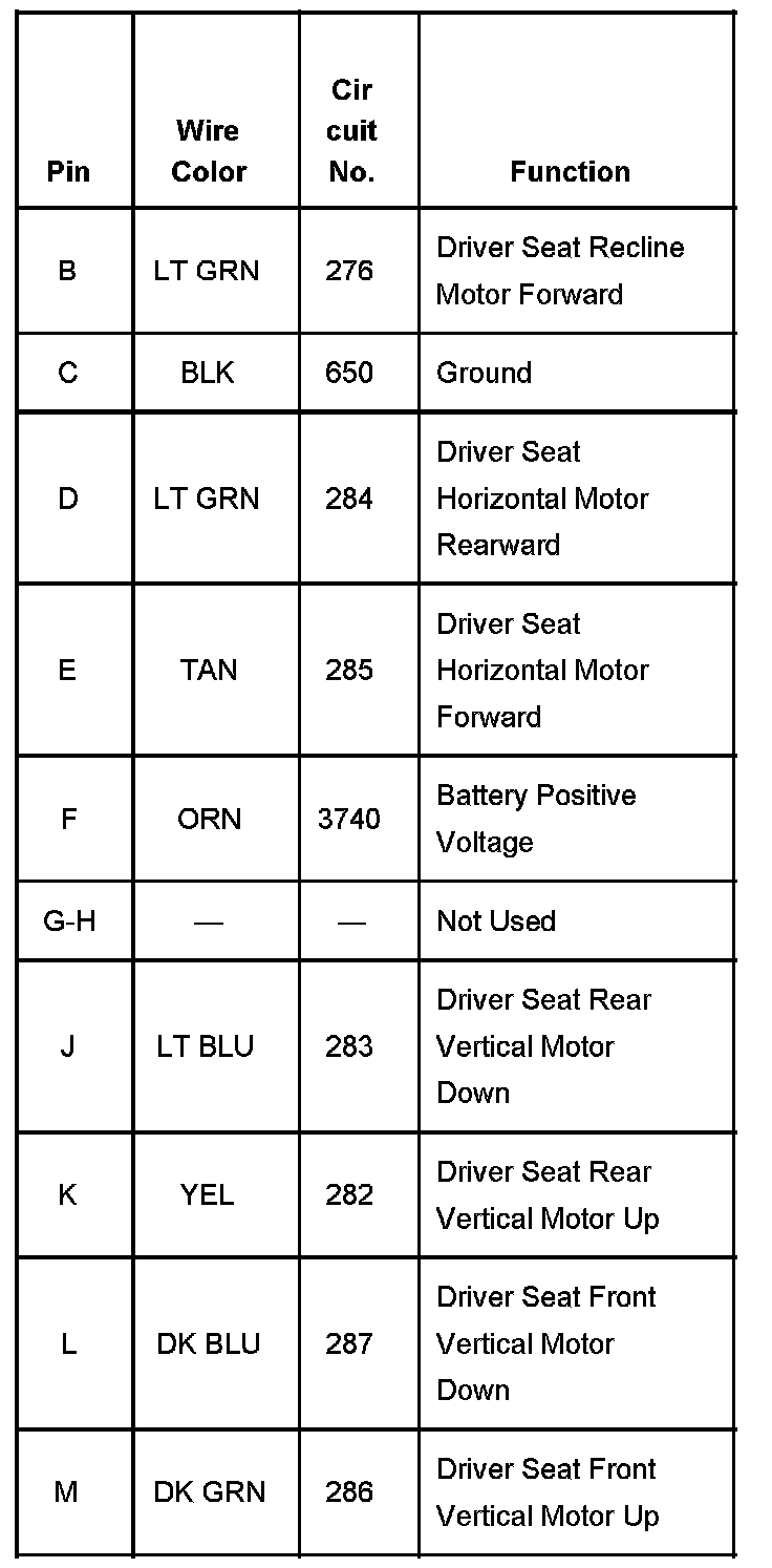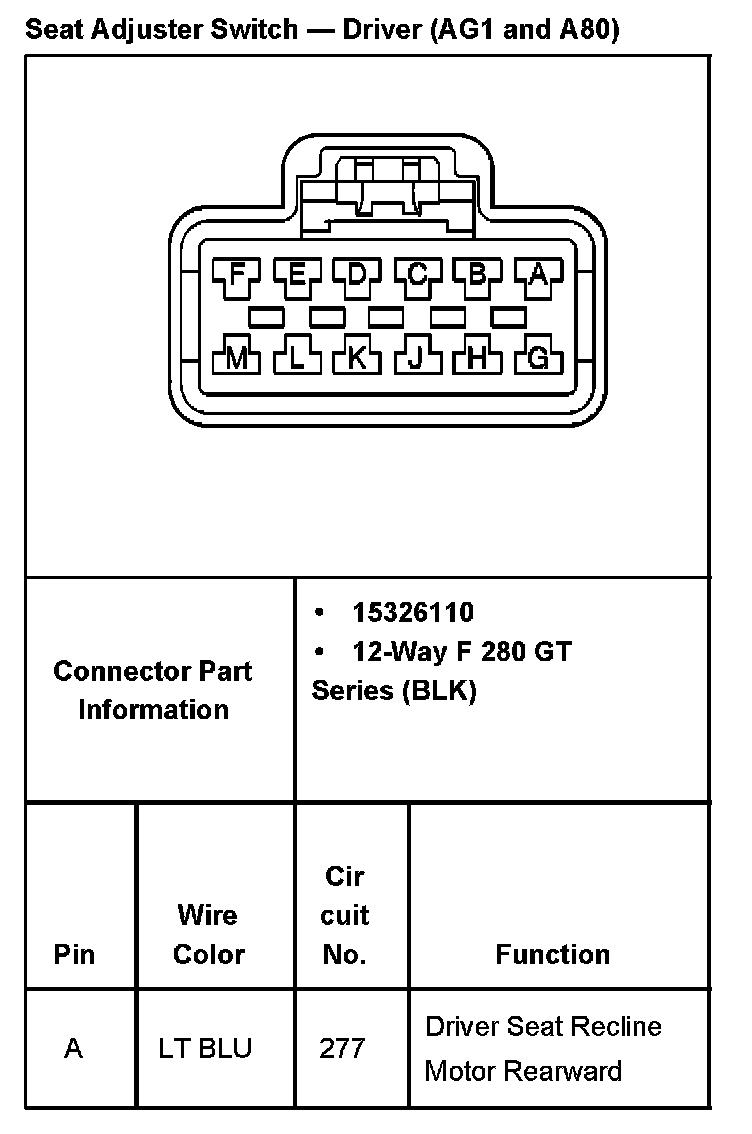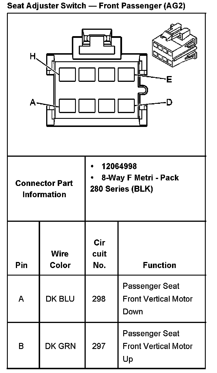 Seat Adjuster Switch - Driver With RPO Codes AG1 And A80 Part 2: