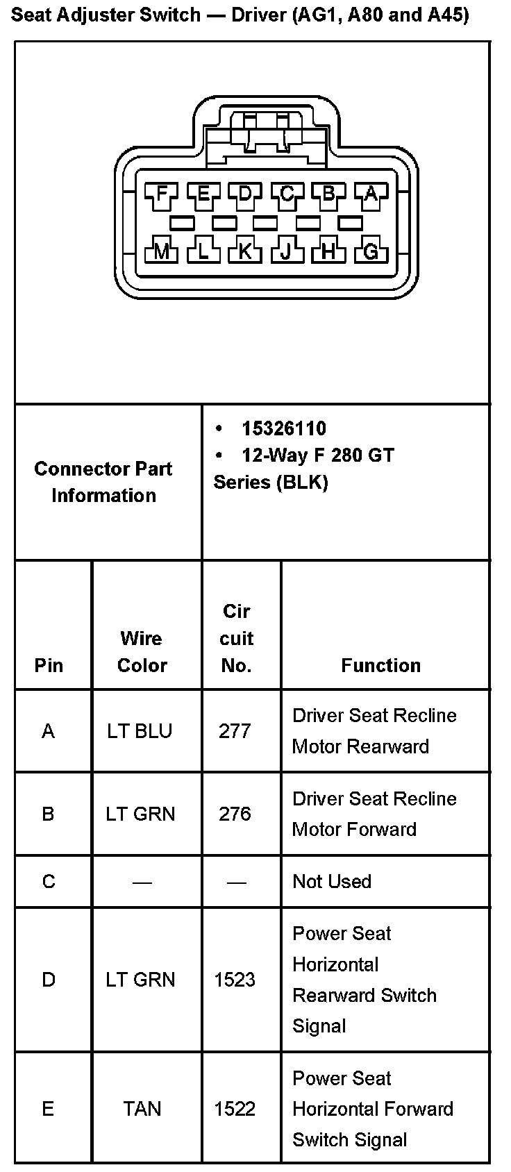 Seat Adjuster Switch - Driver With RPO Codes AG1, A80 And A45 Part 2: