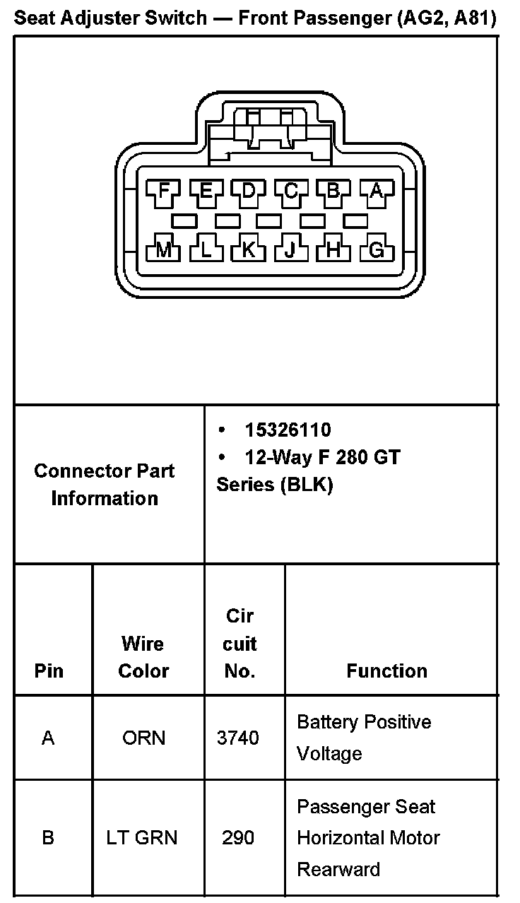 Seat Adjuster Switch - Front Passenger With RPO Codes AG2, A81 Part 2: