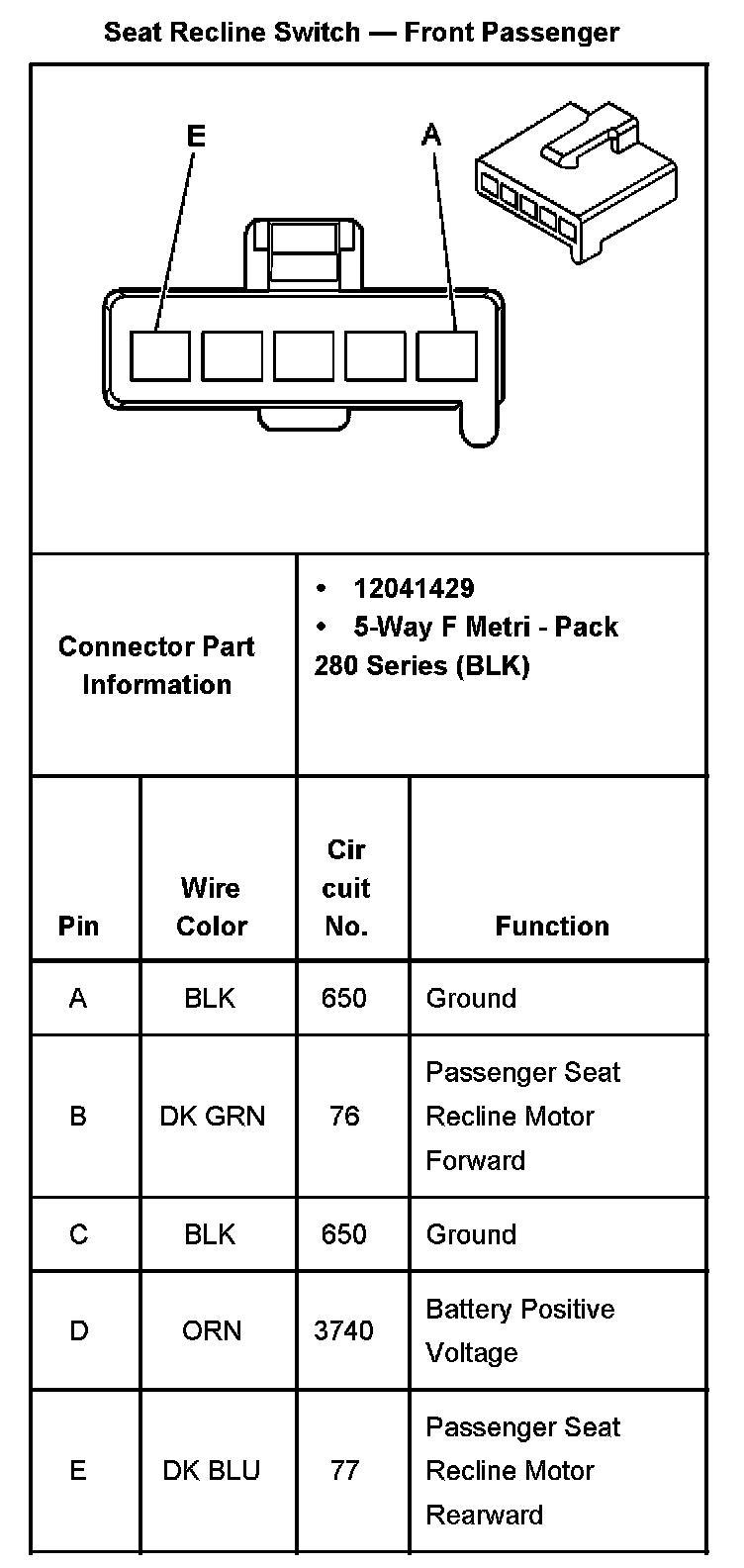Power Seat Switch: Diagrams