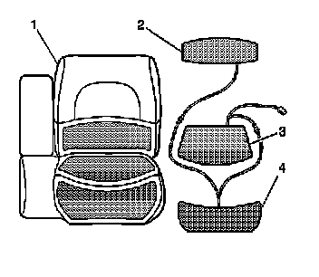 2. Carefully position the replacement heat elements (2,3,4) harness side down, onto the seat cushion/back foam pad as indicated.