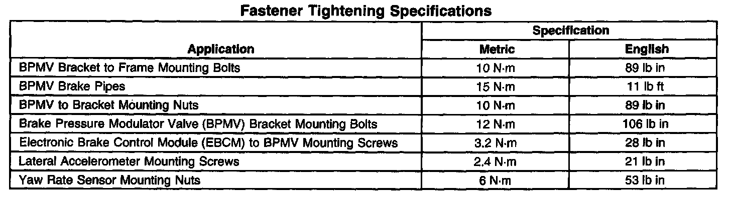 Fastener Tightening Specifications: