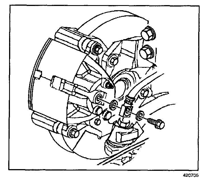 12. Plug the opening in the brake caliper and hose to prevent fluid loss and contamination.