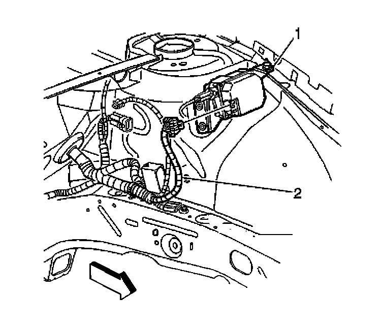4. Remove the cruise control module and bracket assembly (2) from the vehicle.
