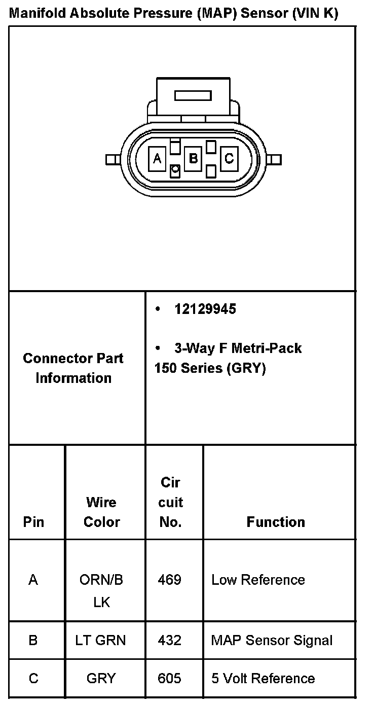 Manifold Absolute Pressure (MAP) Sensor (VIN K):