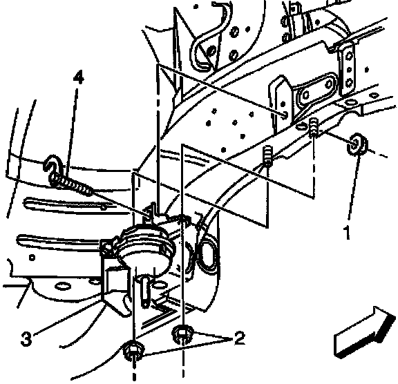 5. Remove the bolt (4) securing the mount to the body frame rail.