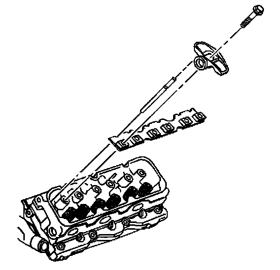 6. Apply GM P/N United States 12345493, GM P/N Canada 10953488 threadlocker or the equivalent to the valve rocker arm bolt threads.