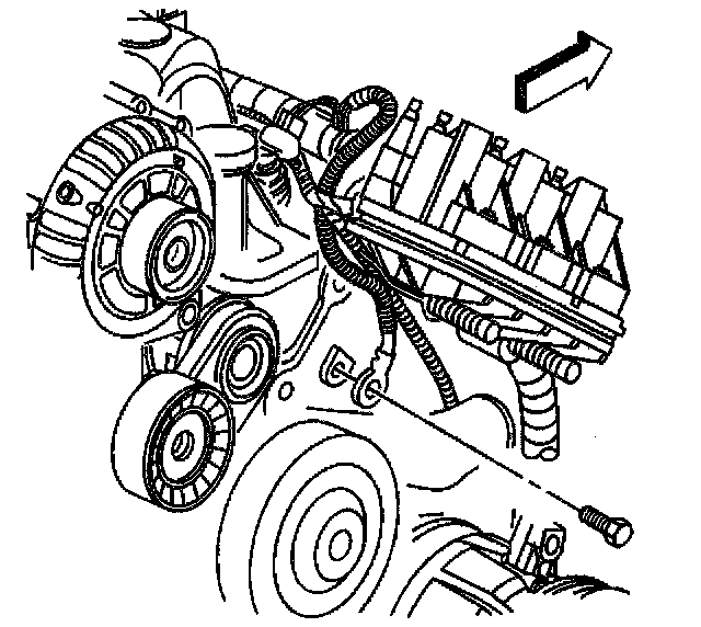 28. Remove the bolt securing the PCM ground located at the left front cylinder head.