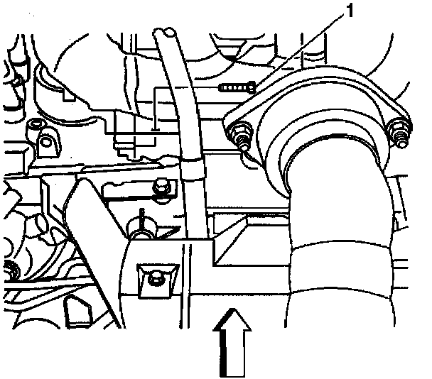 40. Remove the right lower engine to transaxle mounting bolt (1).