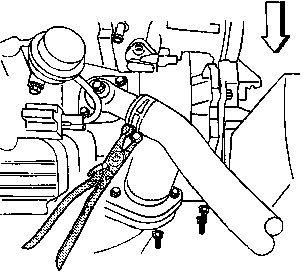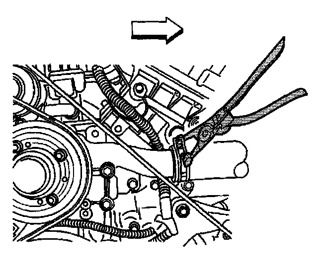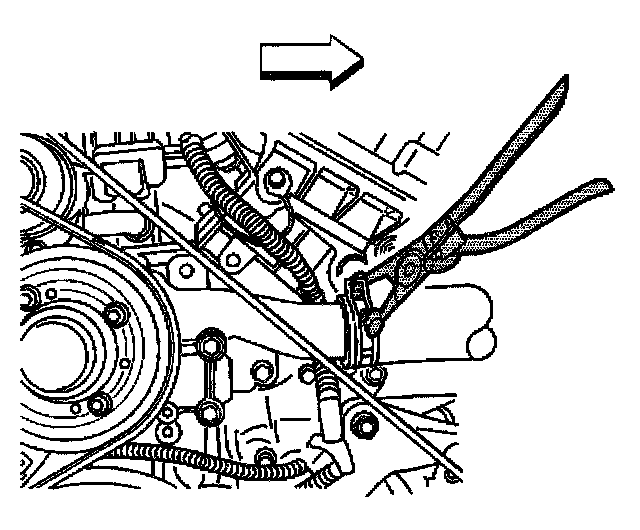 43. Position the J 38185 to the clamp in order to remove the radiator inlet hose from the water pump.