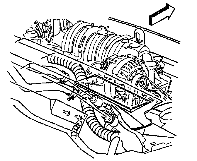 26. Slide the A/C compressor forward off of the mounting studs and allow the compressor to rest on top of the engine frame.