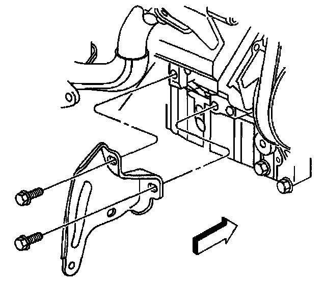 1. Loosely install the two bolts securing the transaxle brace to the engine. Do not tighten at this time.