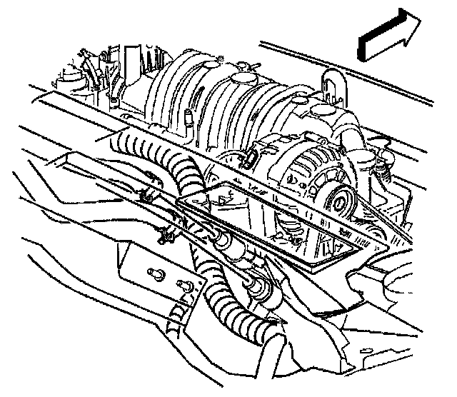 5. Disconnect the fuel feed and return lines from the fuel rail and secure to the air inlet grill.