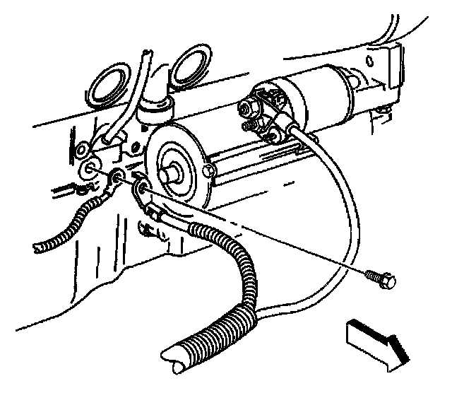 6. Remove the evaporative emission canister purge valve and secure the hose to the air inlet grill.