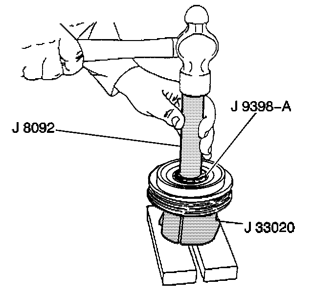 8. Use a J 9398 with the J 8092 in order to drive the bearing out of the rotor hub.