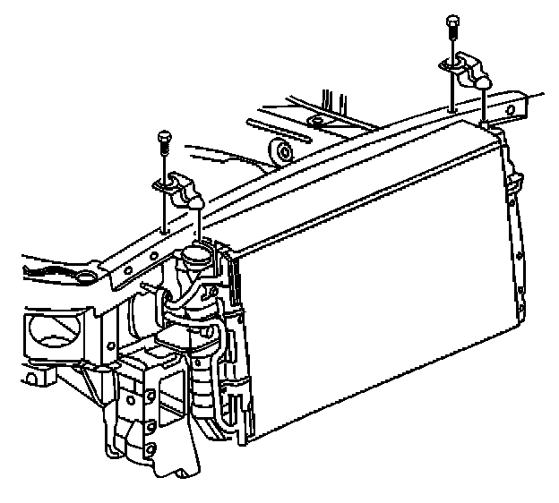 5. Remove the upper radiator mounting brackets.
