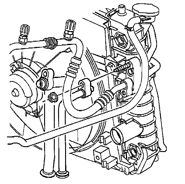 8. Disconnect the evaporator hose from the condenser.