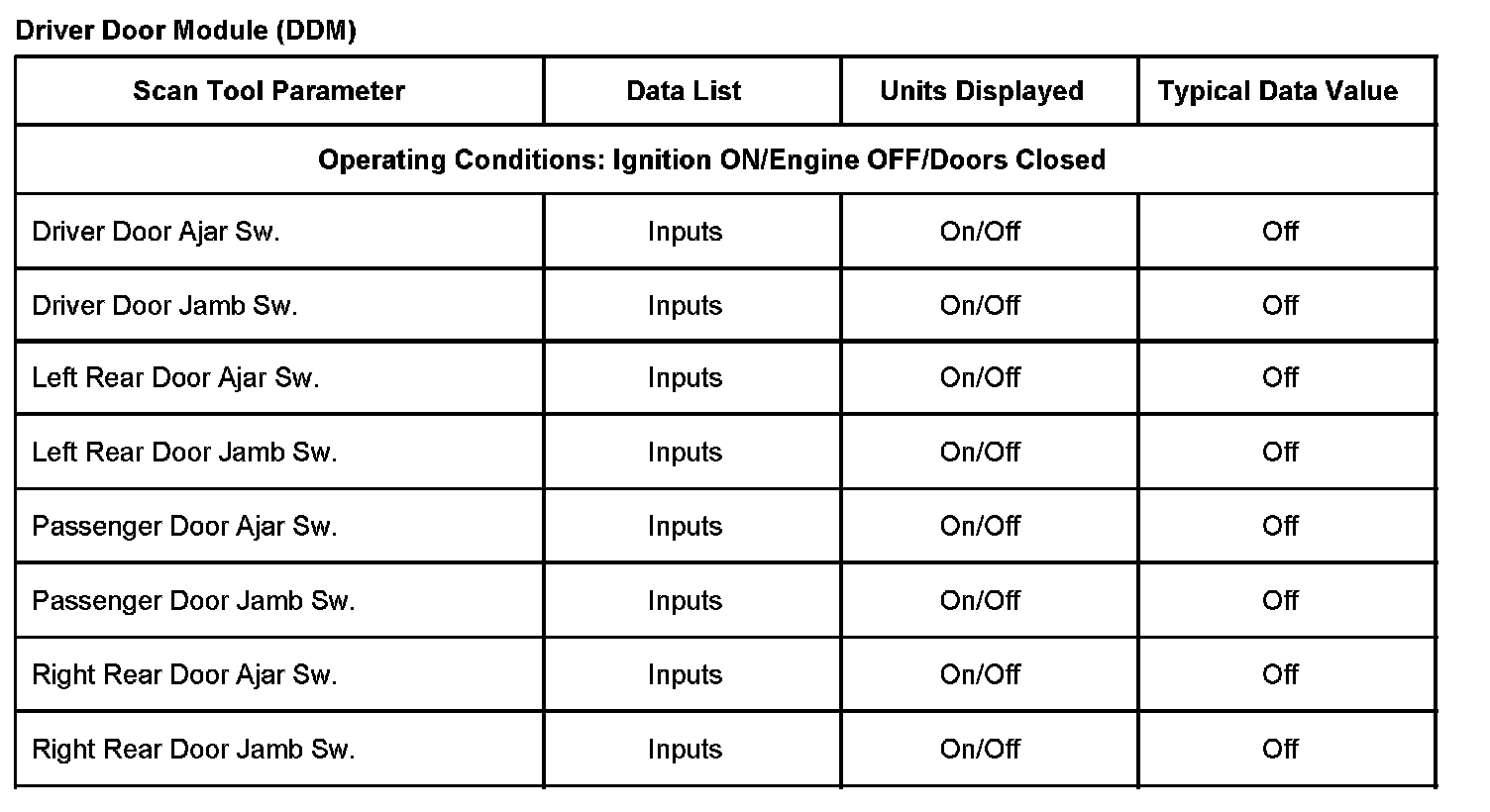 Scan Tool Data List - Driver Door Module (DDM)