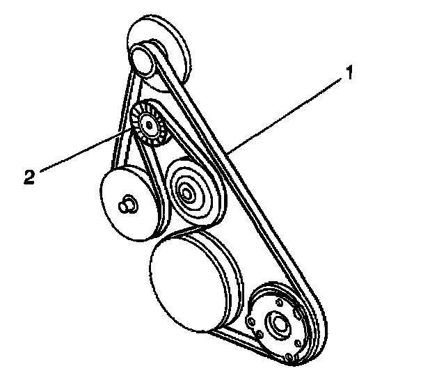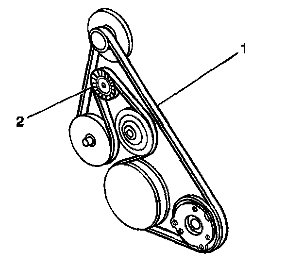 1. Rotate the tensioner (2) counterclockwise to remove the drive belt (1).