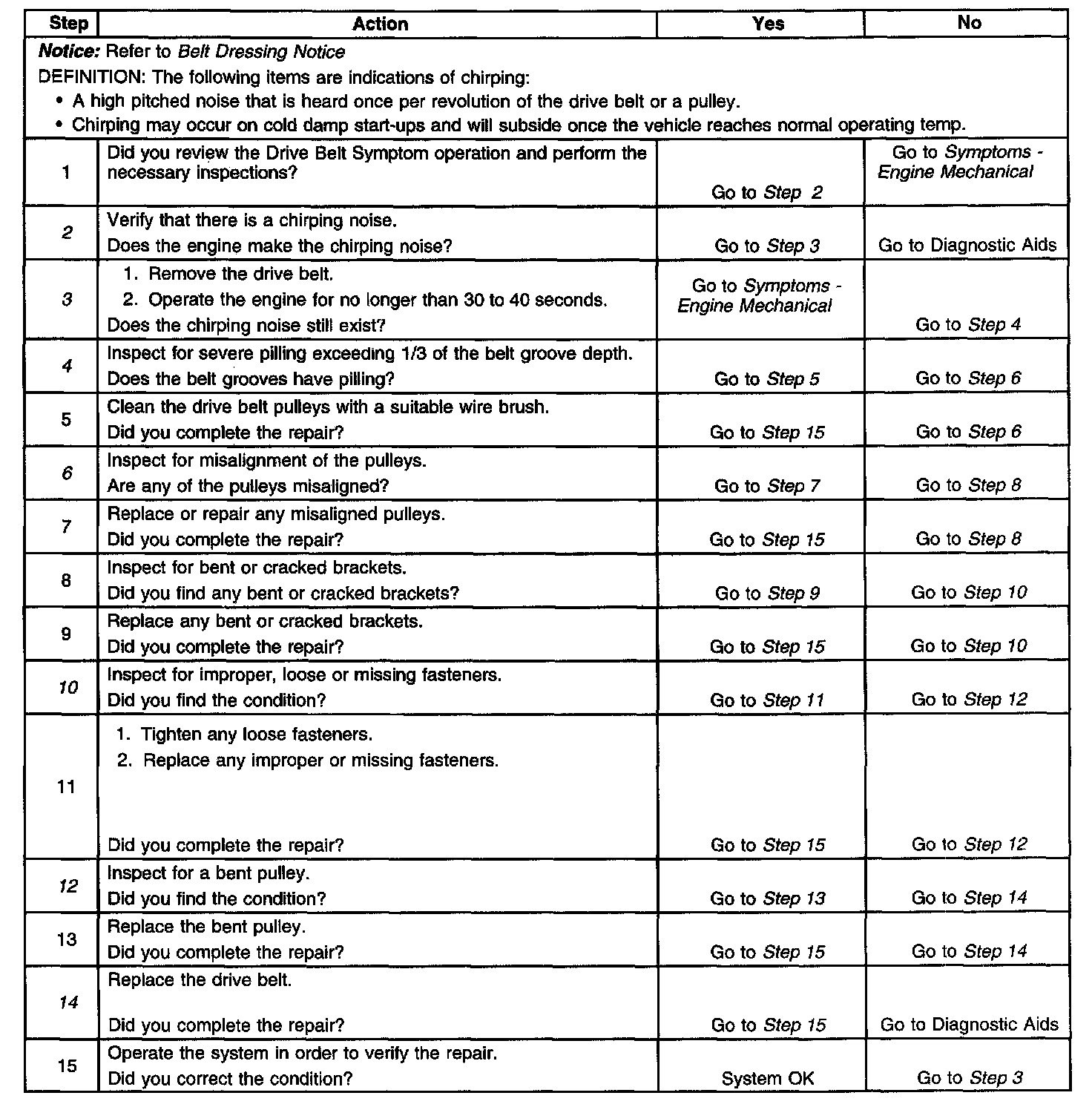 Drive Belt Chirping DiagnosisDiagnostic Aids