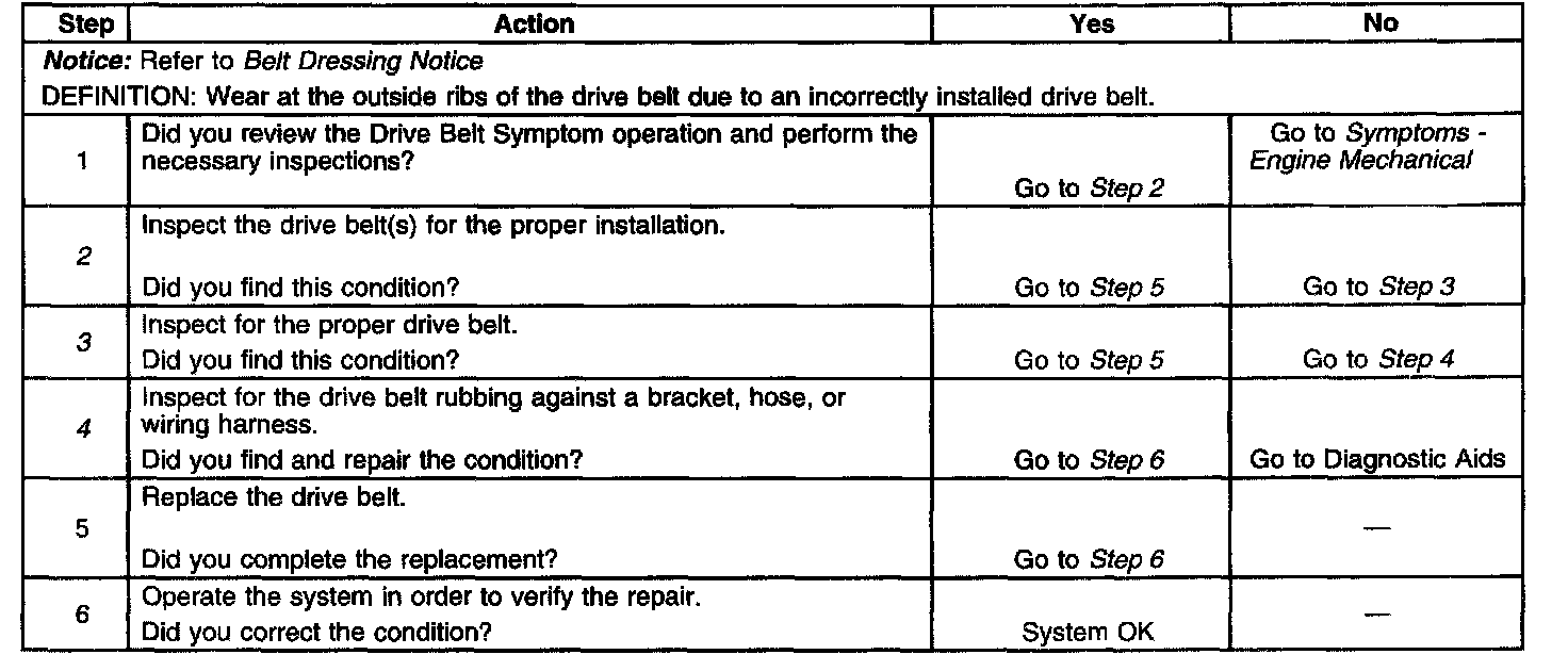 Drive Belt Excessive Wear DiagnosisDiagnostic Aids