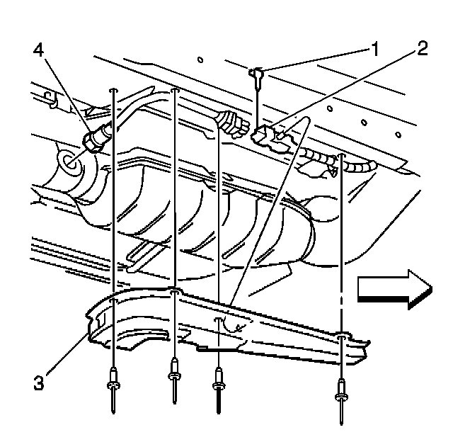 4. Install the front splash shield (3).