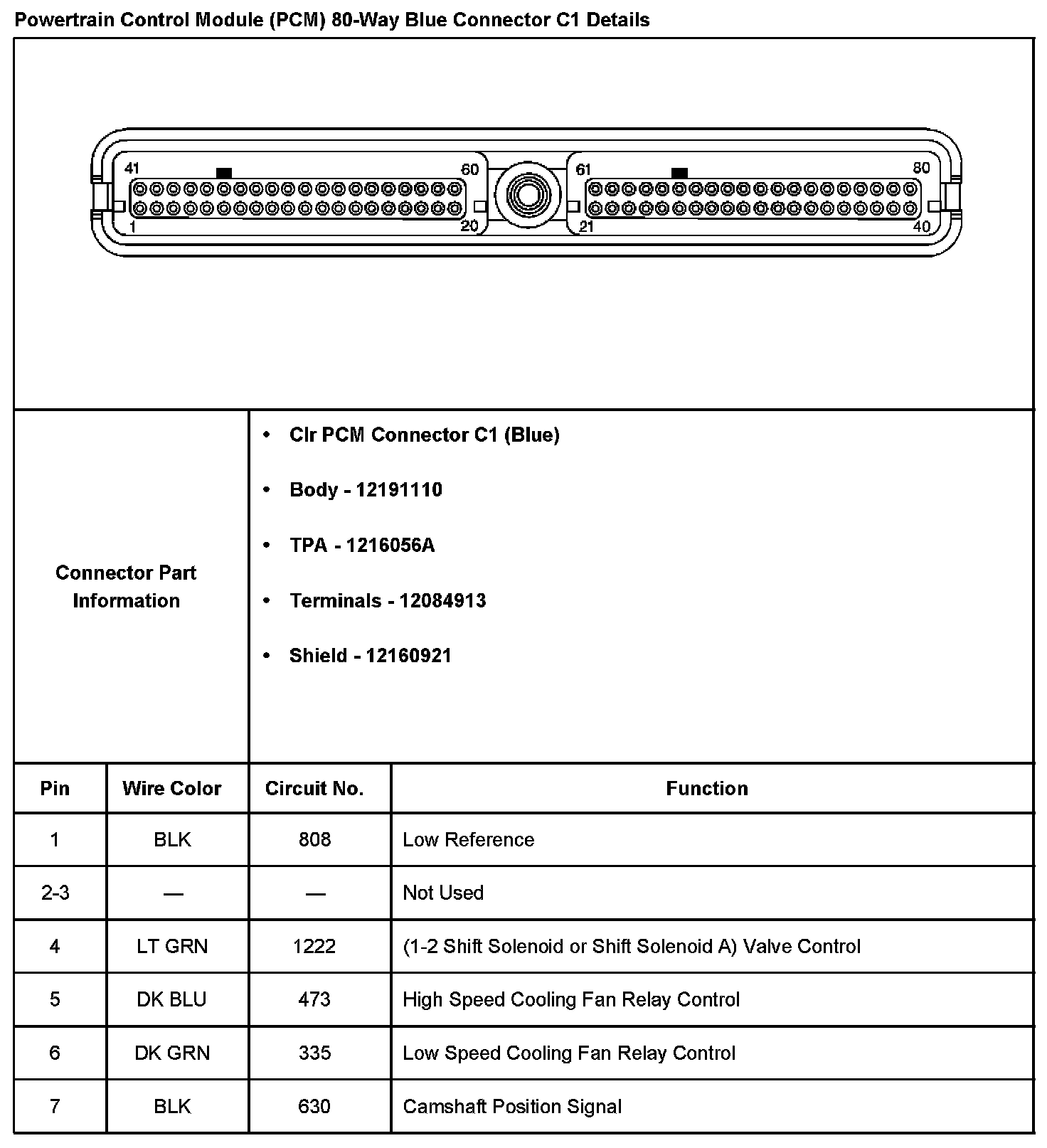 PCM 80-Way Blue Connector C1 Details Part 1: