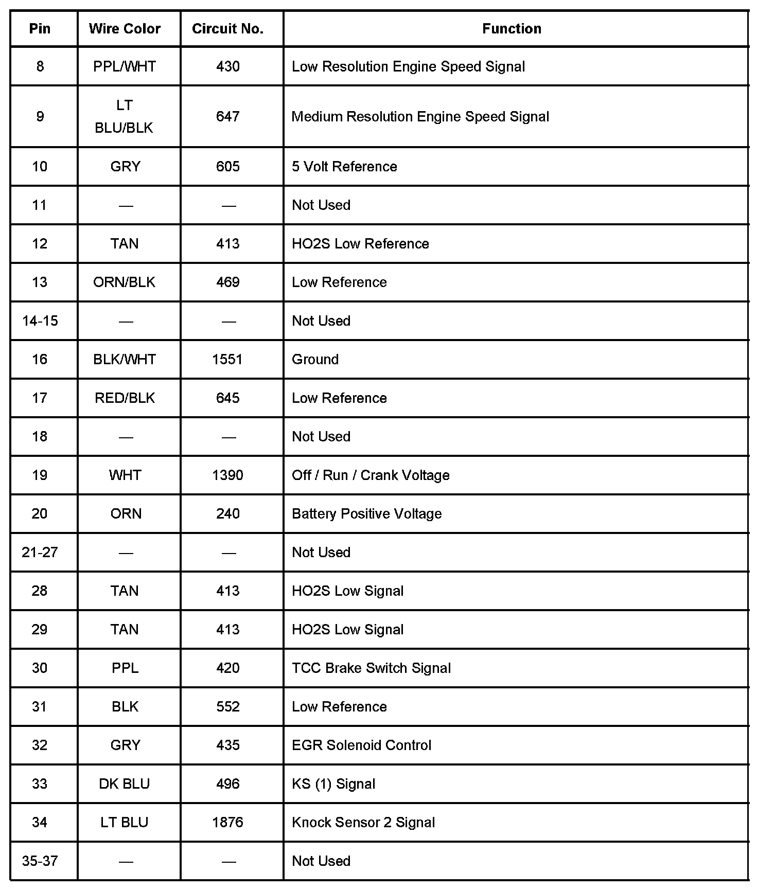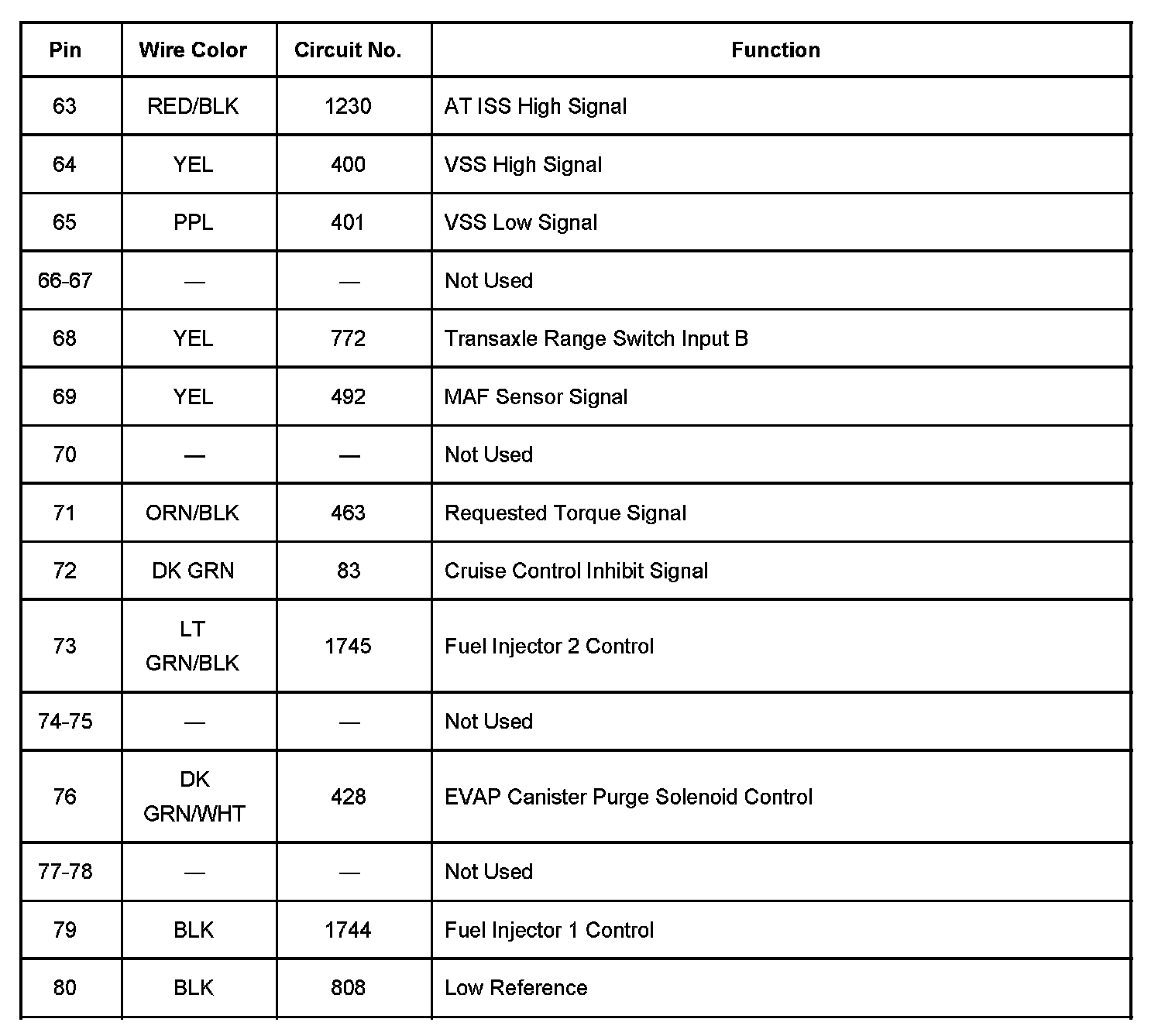 PCM 80-Way Blue Connector C1 Details Part 4: