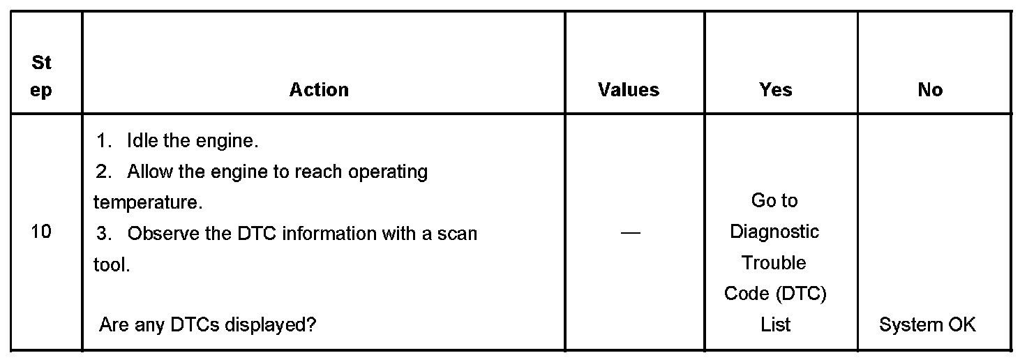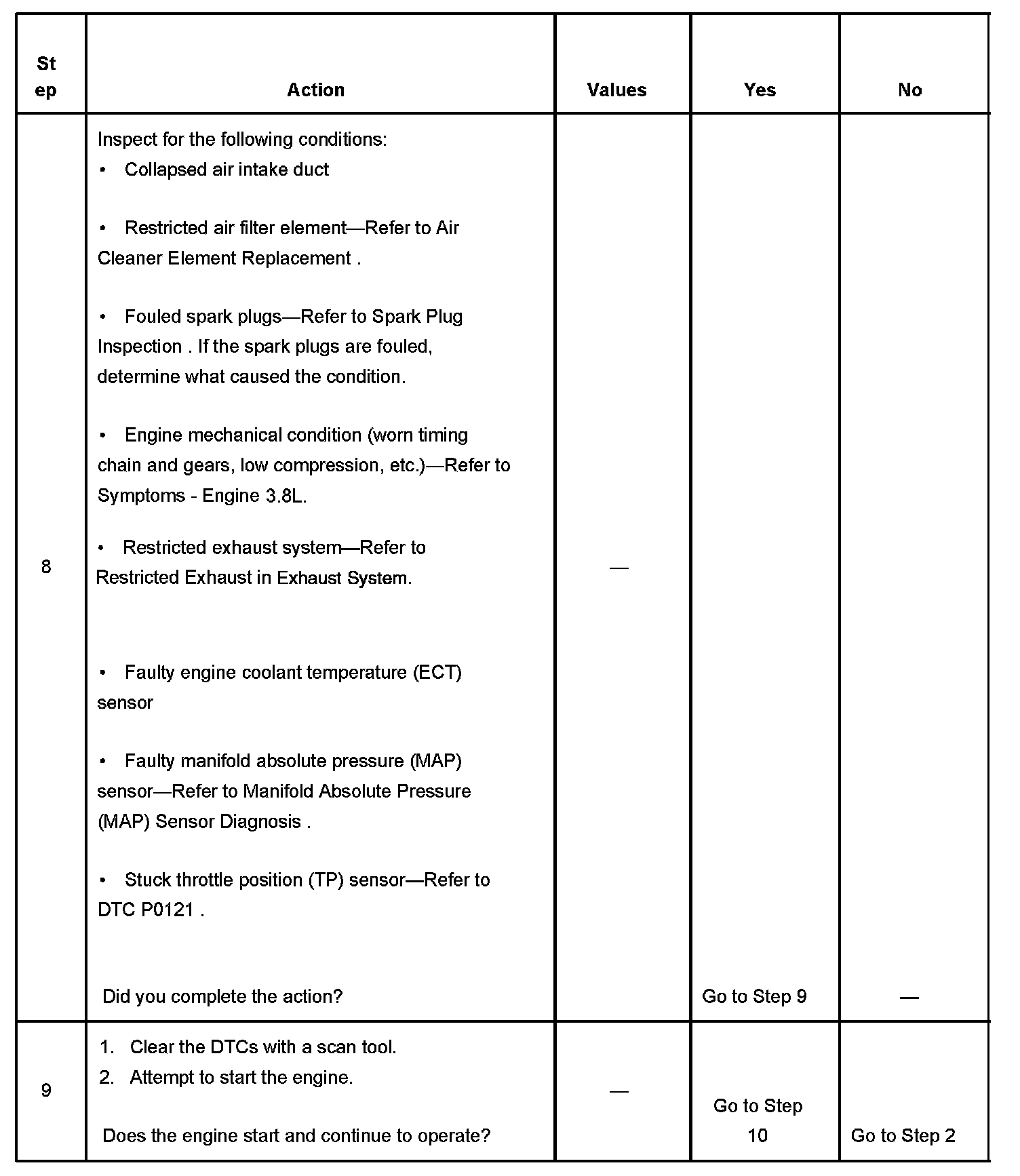 The Engine Cranks but Does Not Run diagnostic table is an organized approach to identifying a condition that causes an engine not to start. The Engine Cranks but Does Not Run diagnostic table directs the service technician to the appropriate system diagnosis. The Engine Cranks but Does Not Run diagnostic table assumes the following: