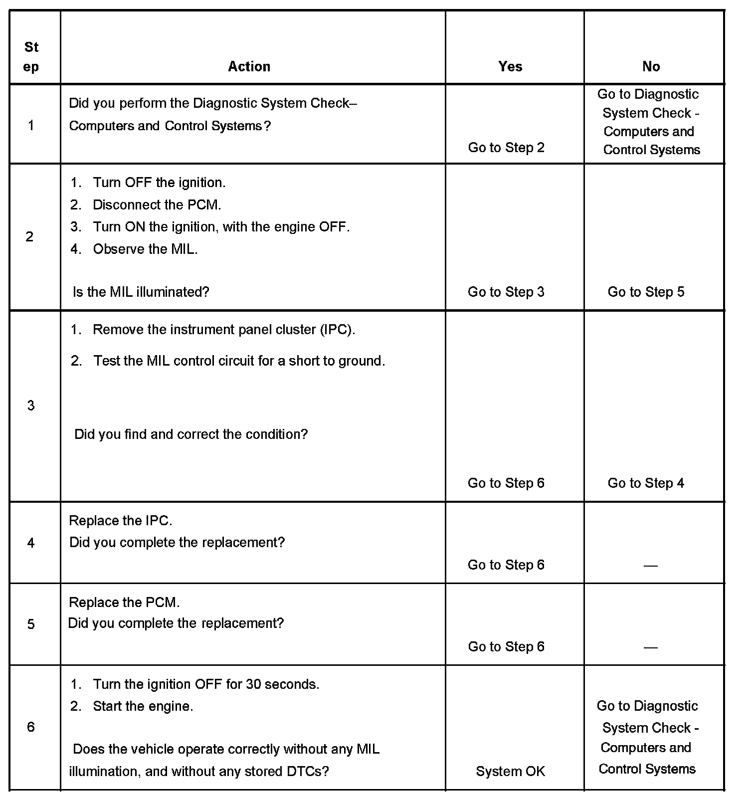 2. This step determines if the condition is with the MIL control circuit or the PCM.