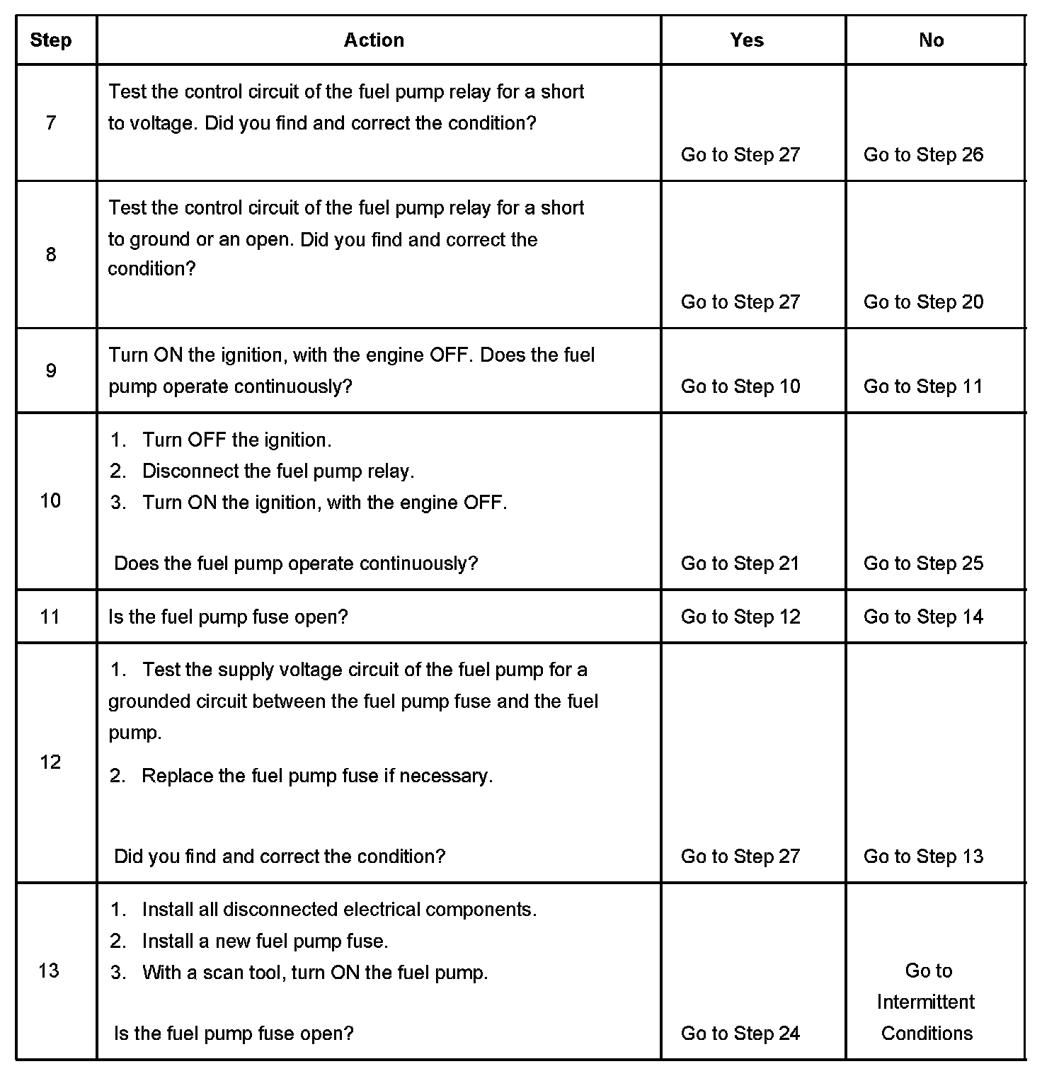13. This step determines if the condition with the circuit is intermittent. If the fuse does not open, inspect the supply voltage circuit between the fuse and the fuel pump for an intermittent condition.