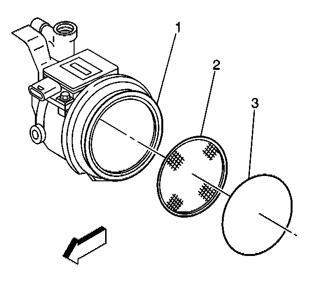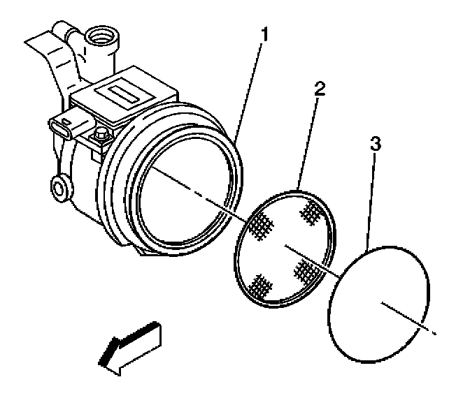 1. Install the throttle body air inlet screen (2) into the throttle body (1).