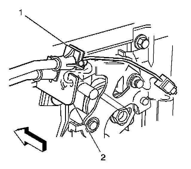 5. Disconnect the accelerator cable (2) from the bracket (1).