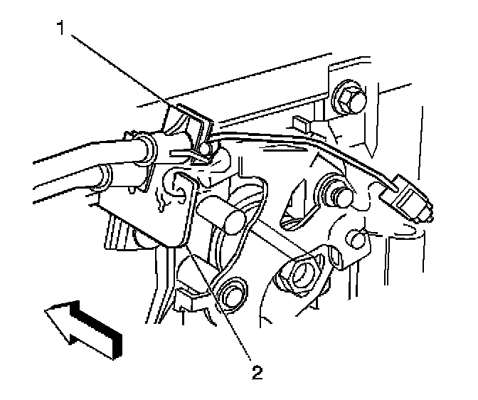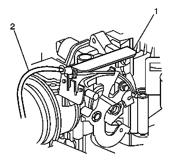 5. Install the cruise control cable (1) to the bracket (2).