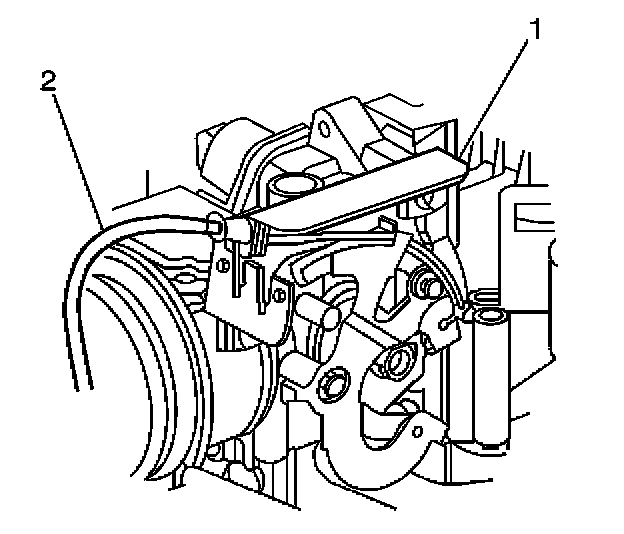 3. Disconnect the cruise control cable (1) from the bracket (2).