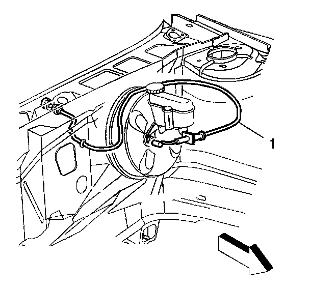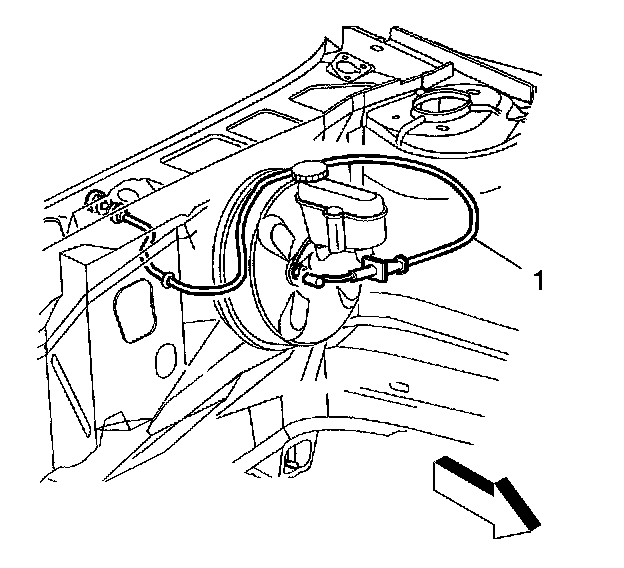 3. Squeeze the accelerator cable cover tangs and push the accelerator cable (1) through the bulkhead.