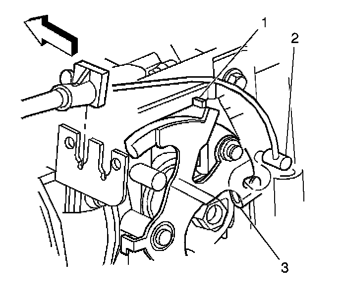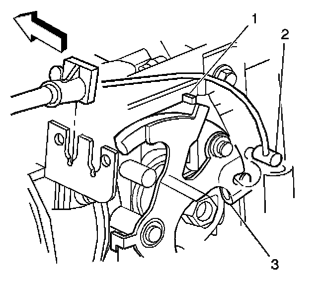 7. Install the accelerator control cable (2) to the throttle body lever (3).