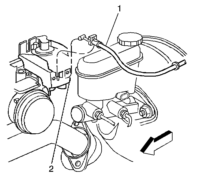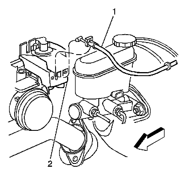 10. Install the accelerator control cable (1) to the retaining clip (2).