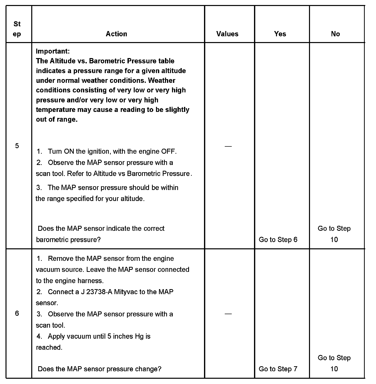 4. This step tests the MAP sensor's ability to correctly indicate BARO.