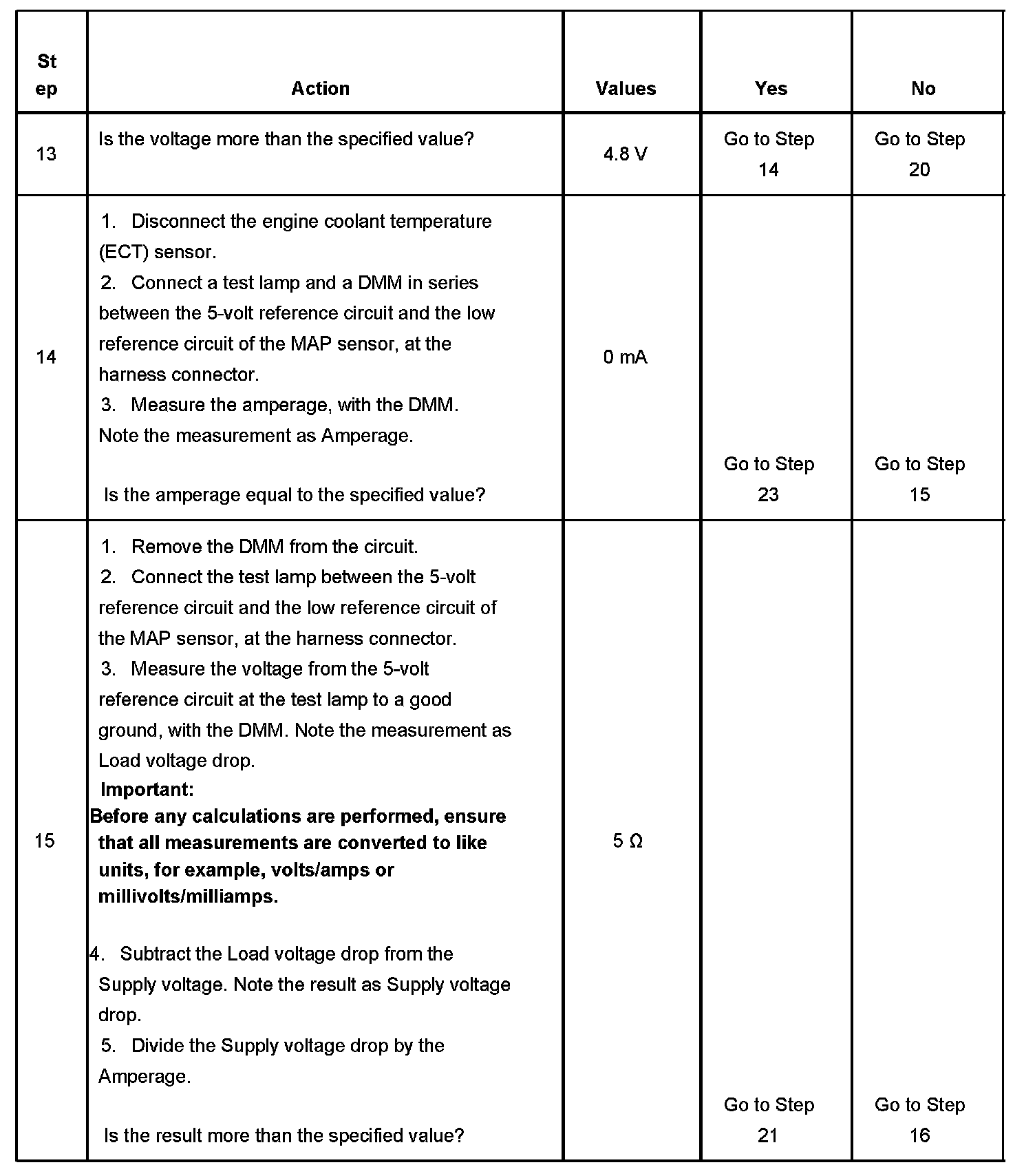 12. The measurement noted in this step will be used in subsequent steps if the measurement does not exceed the specified value.