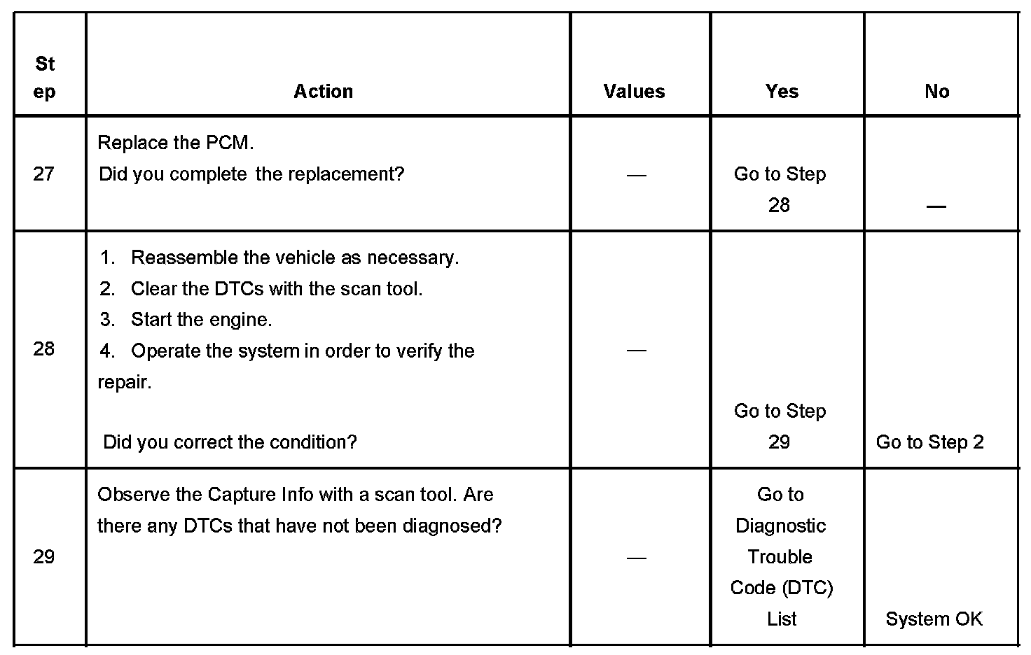 The number below refers to the step number on the diagnostic table.