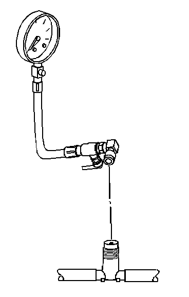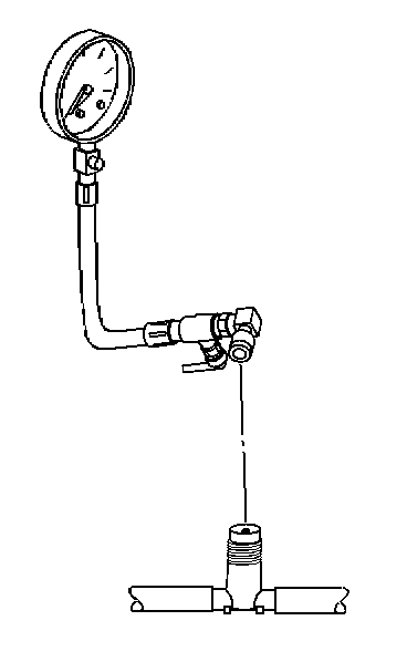 6. Open the bleed valve on the J 34730-1A in order to bleed the air from the fuel pressure gage.