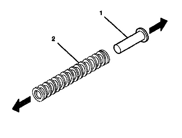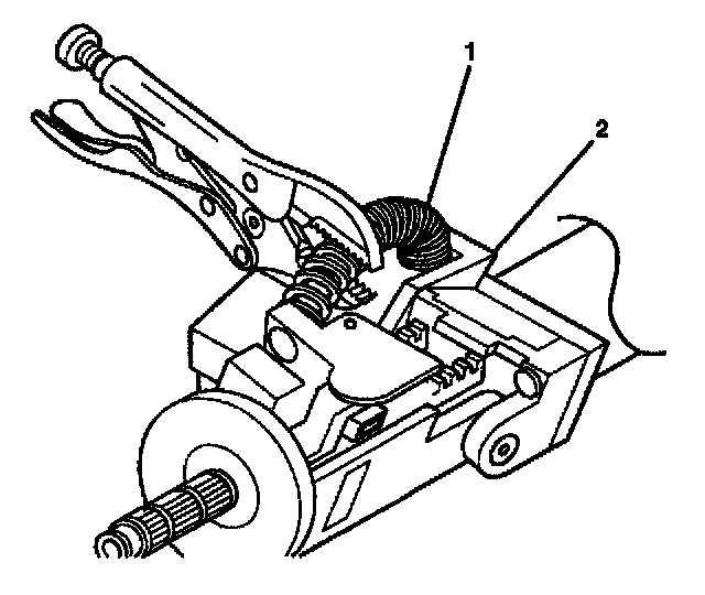 3. Install the tilt spring (1) onto the steering column support assembly (2) and onto the steering column tilt head assembly by using the following procedure: