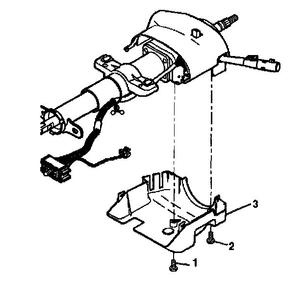 2. Install the lower trim cover (3) onto the steering column. Install 2 pan head tapping screws (1, 2) into the lower trim cover (3).
