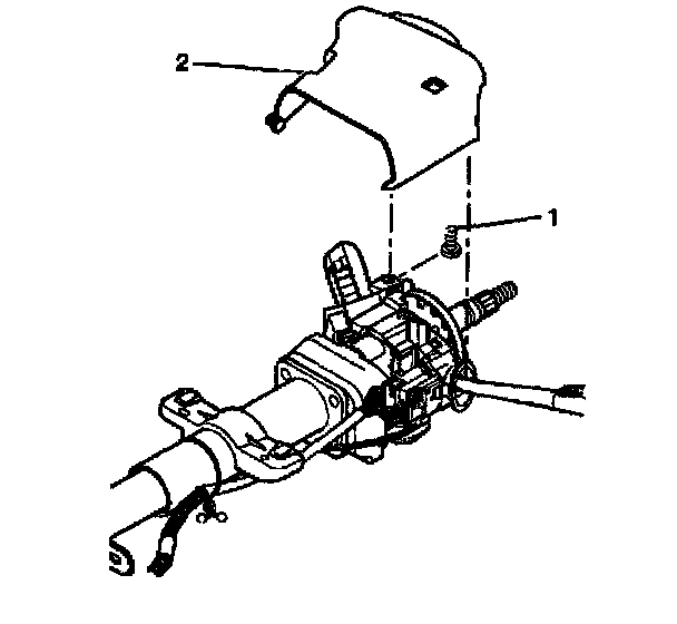 1. Install the upper trim cover (2) onto the steering column. Install 1 TORX head screw (1) into the upper trim cover (2).