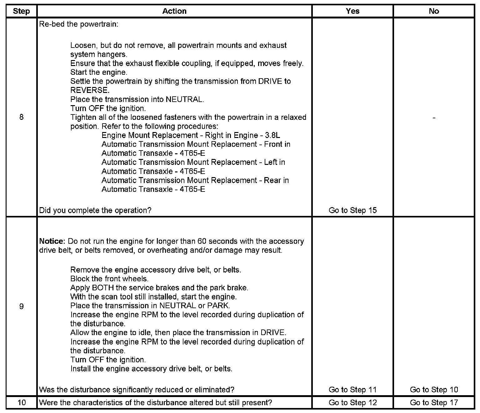 When loosening powertrain mounts in order to re-bed the powertrain observe the following: