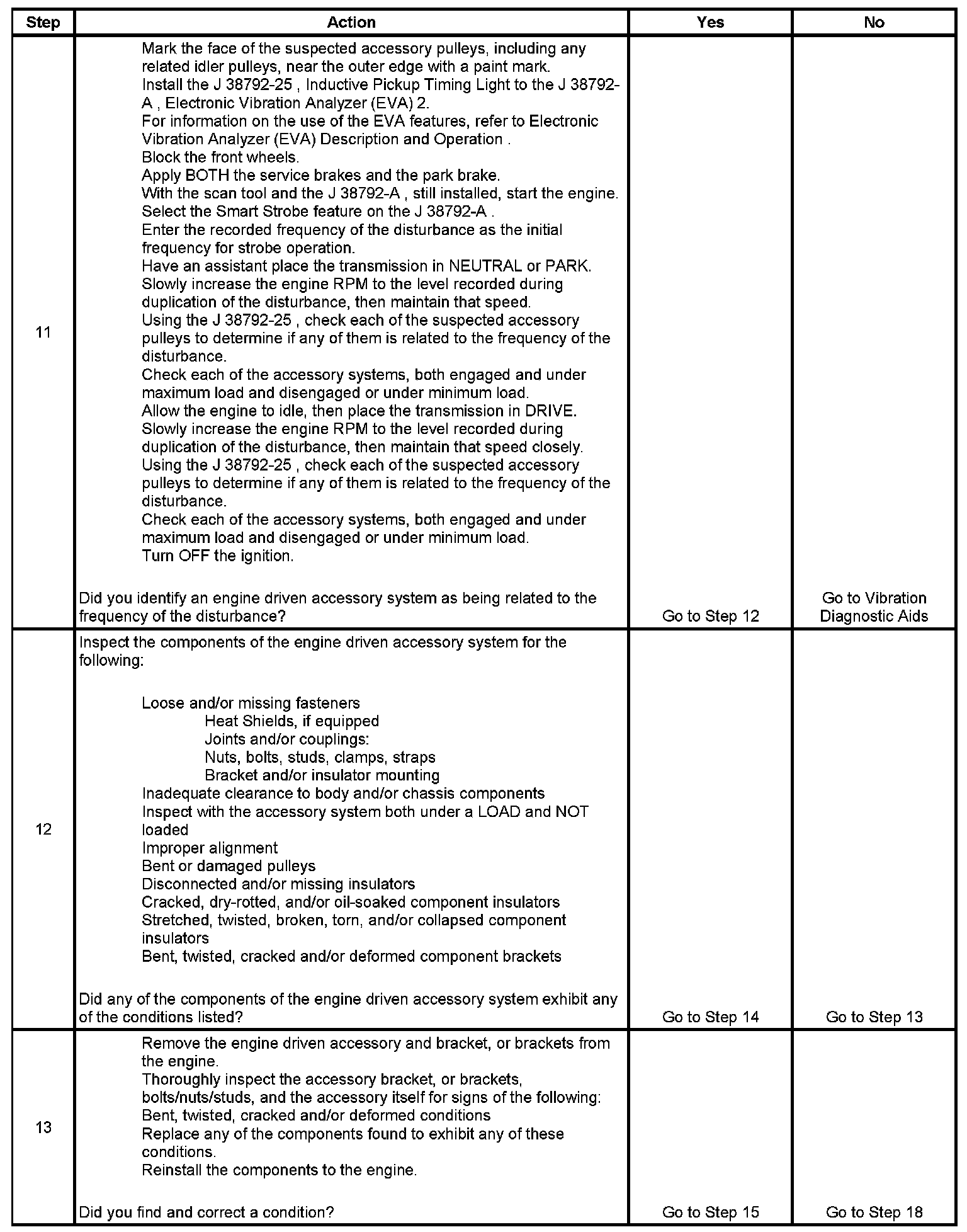 11. If the mark placed on the face of an engine driven accessory pulley seems to stand still while running this test, then that accessory system is either responding to an existing frequency, such as engine firing pulses, or creating a disturbance.