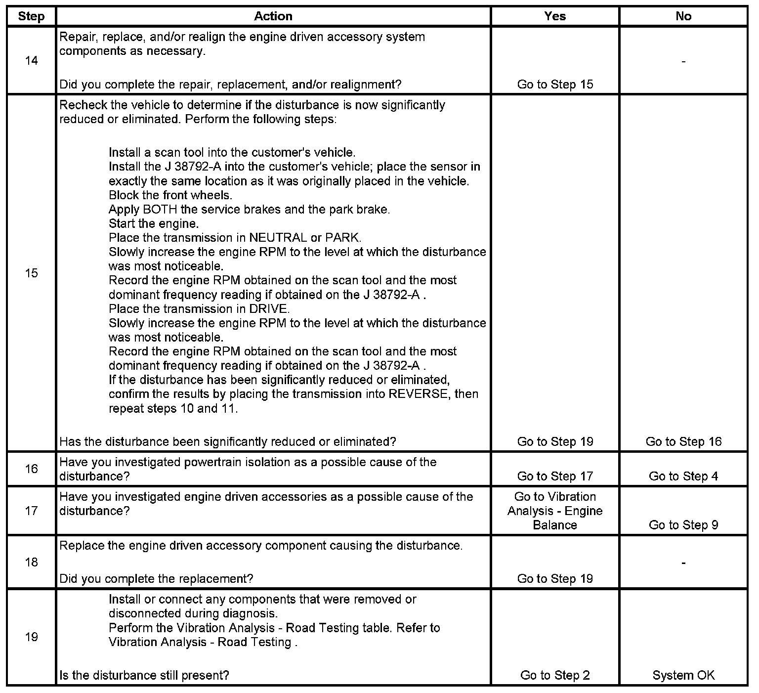 If a disturbance is still present, but the characteristics have NOT been altered, it is NOT likely that these component systems are acting as a transfer path for engine firing frequency or a first order engine disturbance.