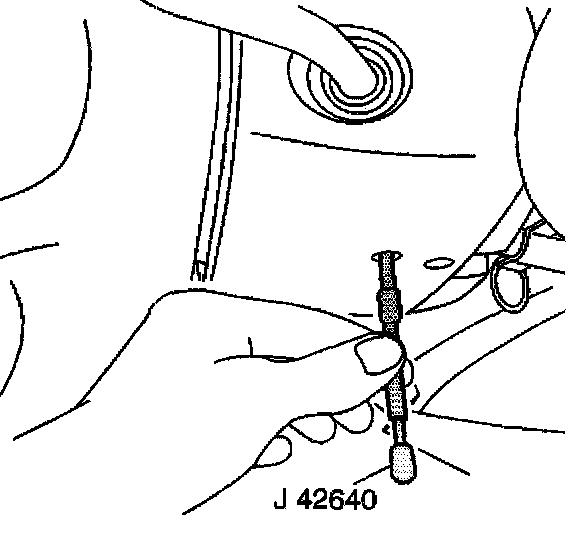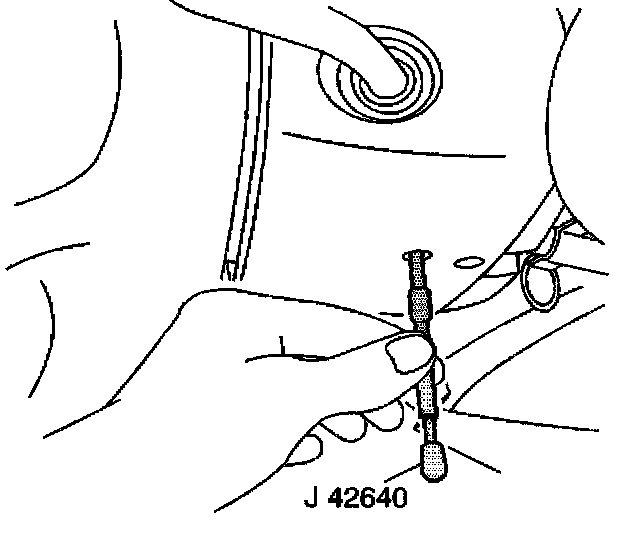 1. Lock the steering column by installing J 42640 into the underside of the steering column.